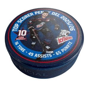 Original-Eishockeypuck nach internationalem Maßstab mit einseitig aufgedrucktem Saison-Design der Trikots...