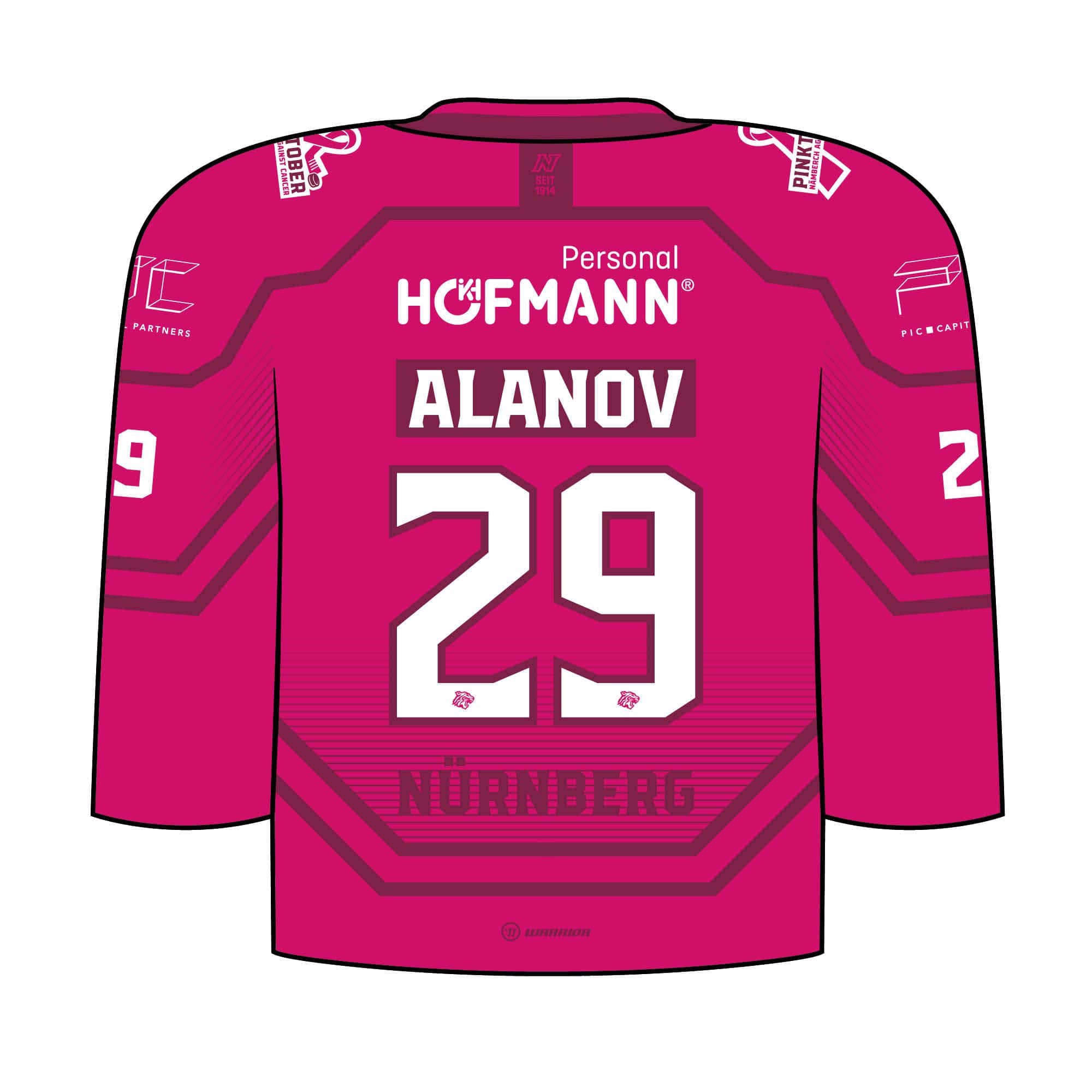Das Pinktober-Trikot unserer #29 Eugen Alanov für die PENNY DEL-Saison 2025/26 von Warrior als Fan-Trikot.