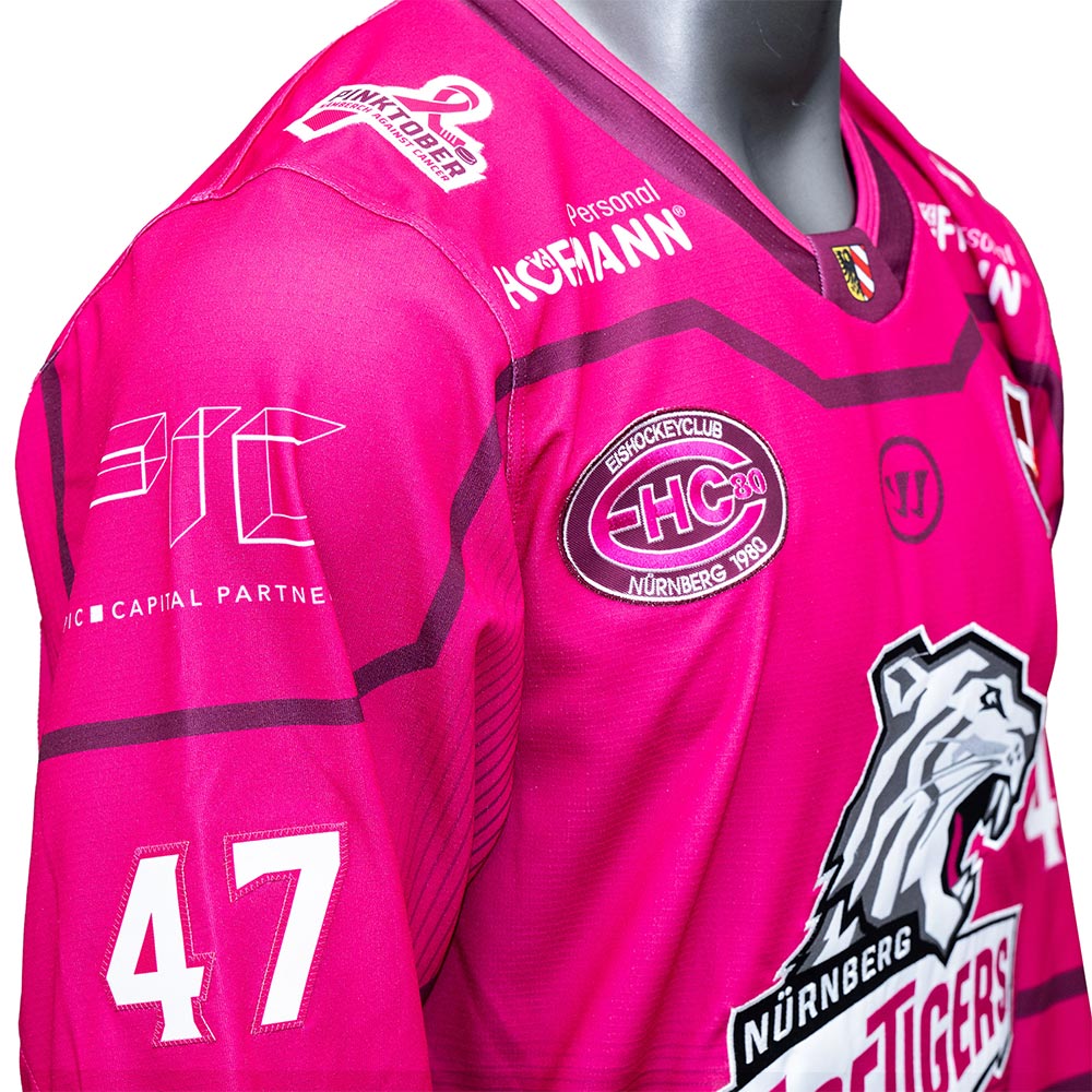 Wichtig: Authentic-Varianten sind von den Pinktober-Trikots nicht erhältlich. Der für die Spieler produzierte Satz wird zu Gunsten der Deutschen Krebshilfe versteigert.