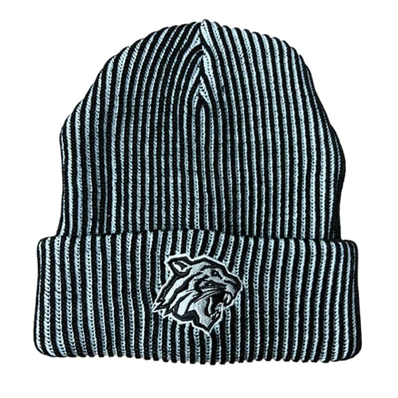 Hochwertig grob gestricktes Beanie mit Tigerkopf Stickerei.