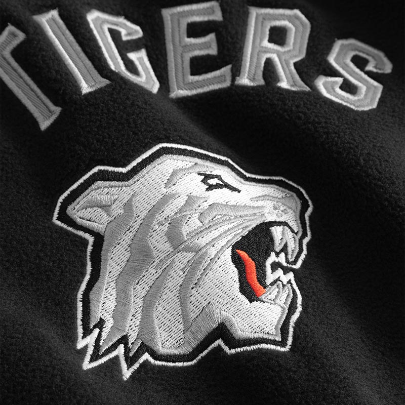 Hochwertiger Fleece Sweater mit Half-Zip und hochwertiger Stickerei im Design der Nürnberg Ice Tigers.