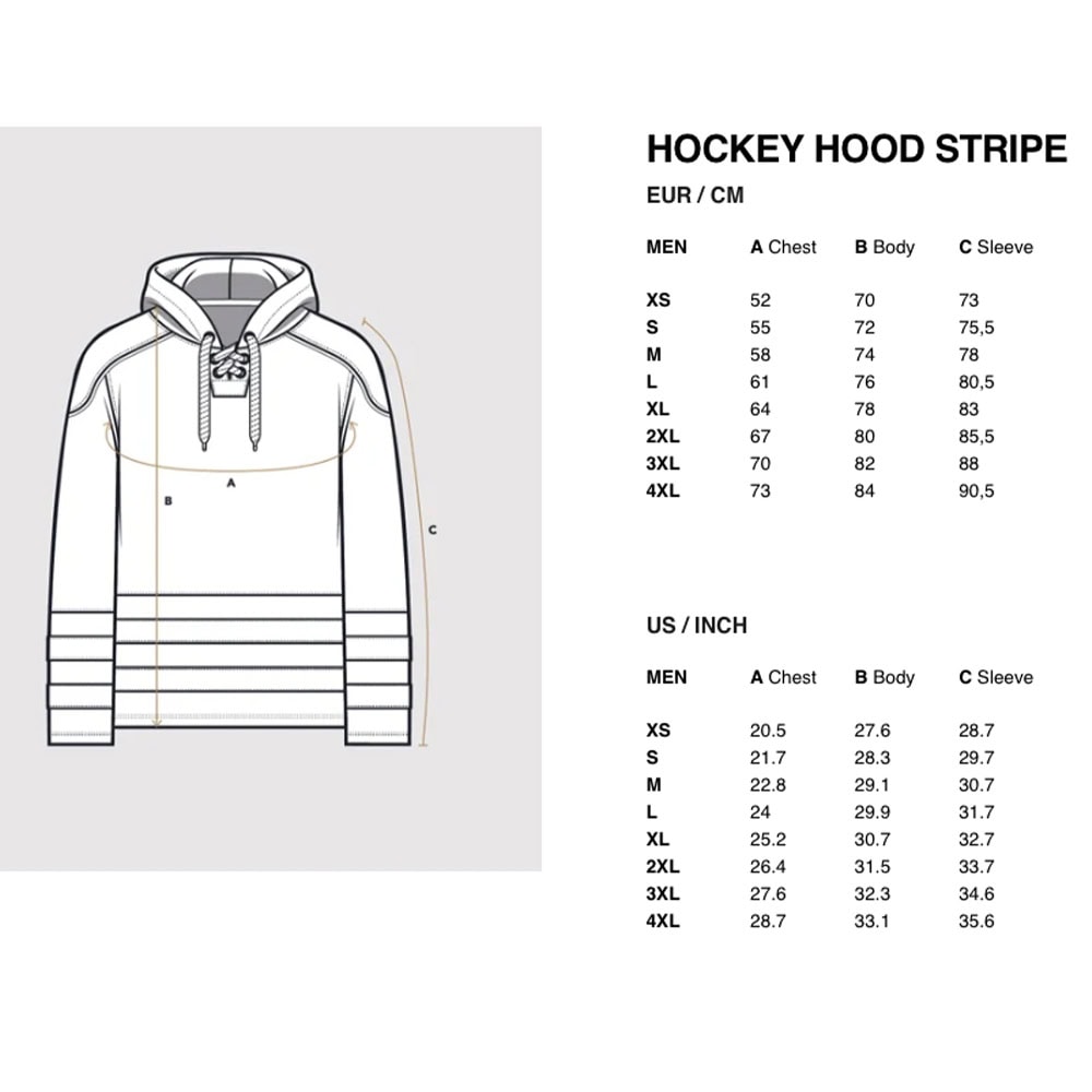 Hochwertiger Hockey Hoodie AWAY in offwhite, rot und blau mit weißer Schnürung sowie gesticktem Ice Tigers Logo „geplüscht“ auf der Brust.