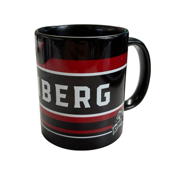 Klassische Keramik-Tasse mit großem Henkel, hochwertige Sublimationsveredelung in 4c mit großem „Nürnberg“-Schriftzug im Design des 3rd Jerseys.