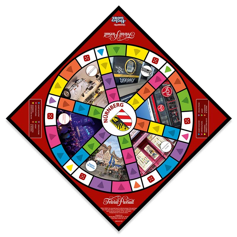 Dieses Trivial Pursuit ist eine Sonderedition, bei denen nicht klassisch Trivia rund um Geschichte, Erdkunde, Kunst und Co. abgefragt wird, sondern Fachwissen über verschiedene Themen rund um Nürnberg.